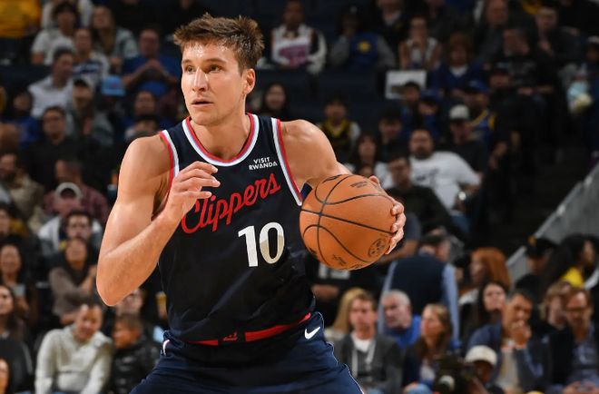 博格達(dá)諾維奇在上賽季中段的一筆交易中被亞特蘭大老鷹送到了快船。在加盟快船之后,博格達(dá)諾維奇在上賽季的NBA常規(guī)賽中總共出場30次,場均出場時間達(dá)到了25分鐘,場均數(shù)據(jù)為11.4分3.1籃板3.2助攻0.7搶斷0.2蓋帽,還有1.2次失誤和2.3次犯規(guī),投籃命中率47.4%,三分命中率42.7%,罰球命中率87.5%。到了季后賽,博格達(dá)諾維奇總共出場7次,場均出場時間達(dá)到了16.7分鐘,場均數(shù)據(jù)為6.4分2.9籃板2.1助攻0.4搶斷,還有1.6次失誤和3.6次犯規(guī),投籃命中率36.4%,三分命中率29.2%,罰球命中率85.7%。本賽季開季至今,博格達(dá)諾維奇受到傷病和戰(zhàn)術(shù)安排方面的影響在前24場比賽中總共出場10次,場均出場時間25.4分鐘,場均數(shù)據(jù)為9.2分3.2籃板3.2助攻0.7搶斷0.1蓋帽,還有1.3次失誤和2.7次犯規(guī),投籃命中率39%,三分命中率33.3%,罰球命中率84.6%。
