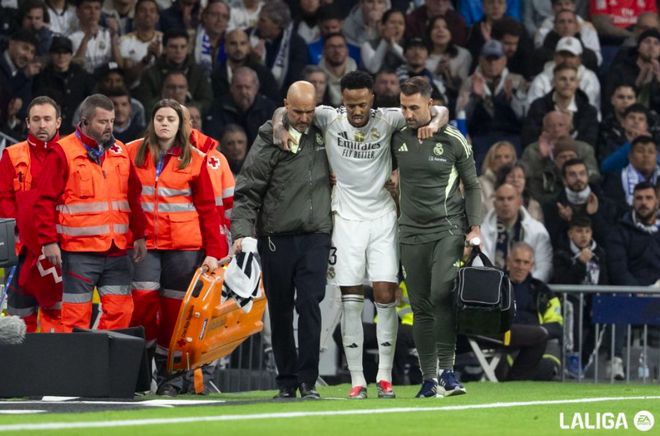 7分鐘后,皇馬就遇到了大麻煩,米利唐在快速回防的過程中,雖然勉強完成了解圍,卻拉傷了大腿的肌肉,米利唐表情相當痛苦,被攙扶下場。據(jù)西班牙媒體報道,米利唐的傷勢不容樂觀。